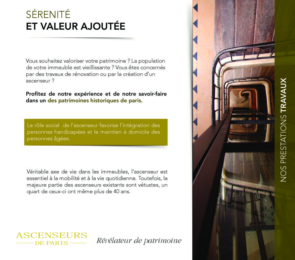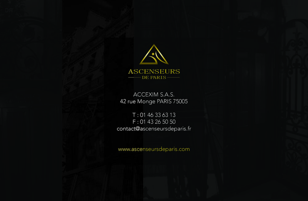 Confiez la pose et la maintenance de votre ascenseur à une entreprise spécialisée : ASCENSEURS DE PARIS. Nous vous faisons bénéficier de notre savoir-faire en tant qu'ascensoriste et de prestations de qualité sur l'ensemble de la ville de Paris et aux alentours.
